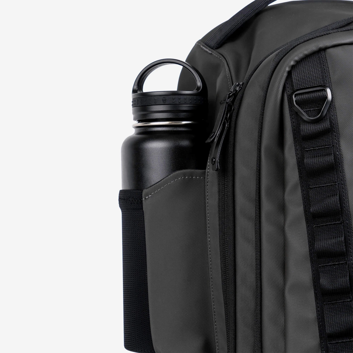 The right hand side features a water bottle storage, perfect for the 32oz Stainless Steel Bottles. The Gravestone Backpack full features: