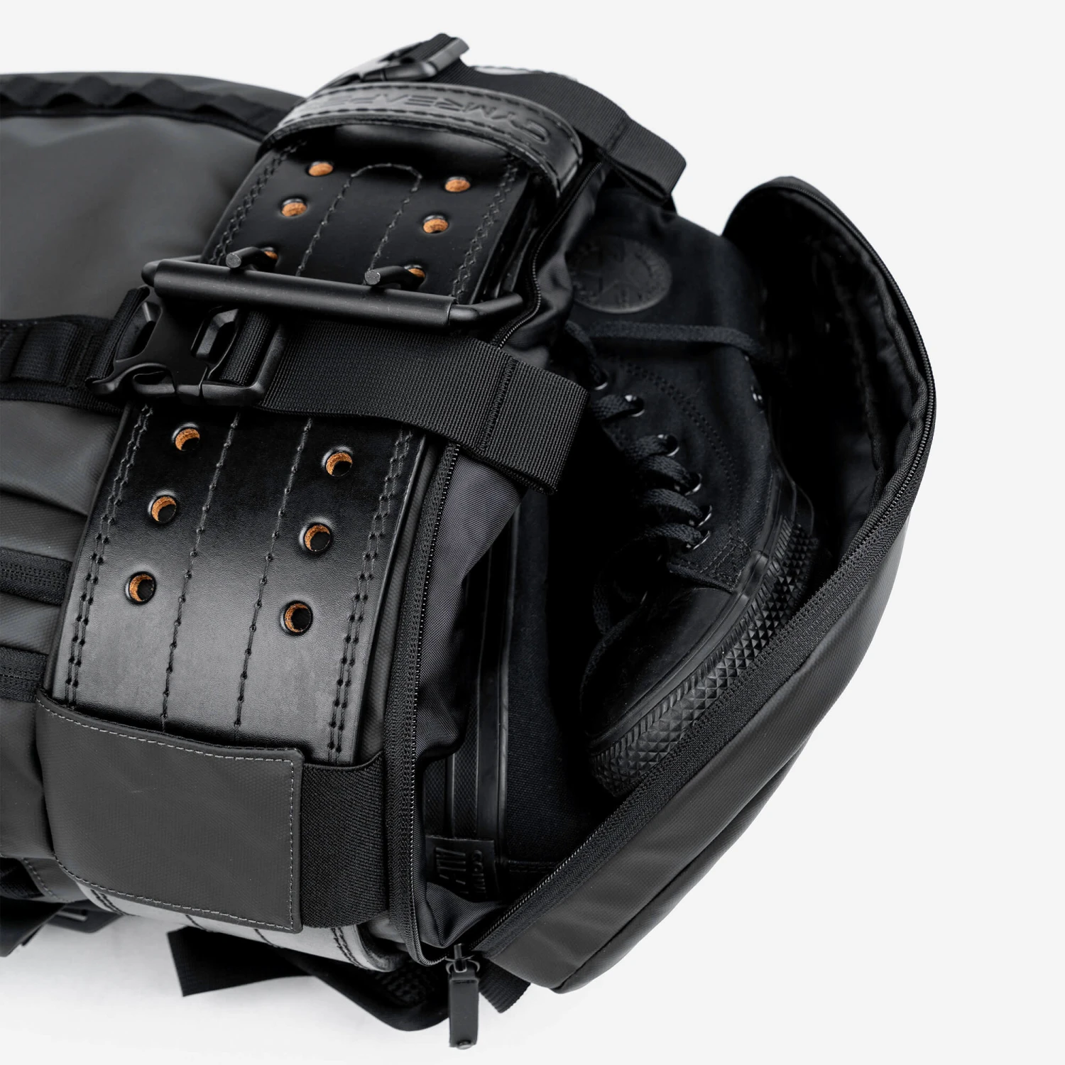 The Gravestone Backpack provides 35 liters of optimized training and lifestyle space. Featuring water-resistant fabrication, sectioned storage, and aluminum hardware.