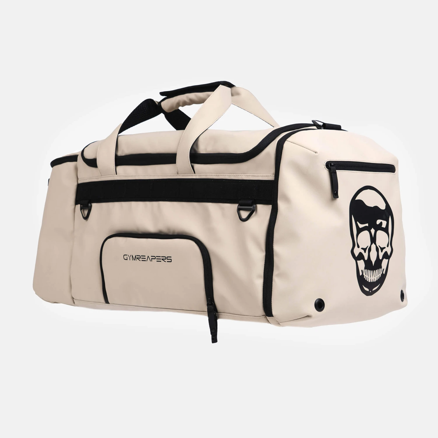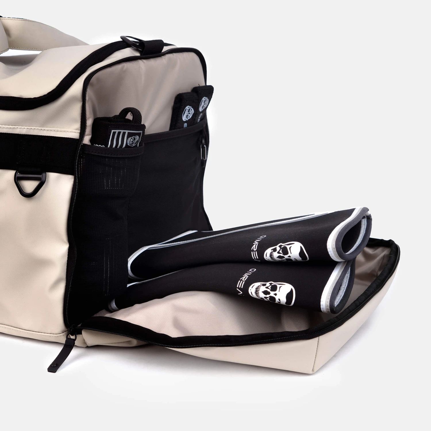 The multiple zippered locations in the main compartment give you endless locations to stay organized, including a separate space for your shoes. Additionally this duffle has a patent pending sleeve strap to hang your sleeves to dry post-workout.