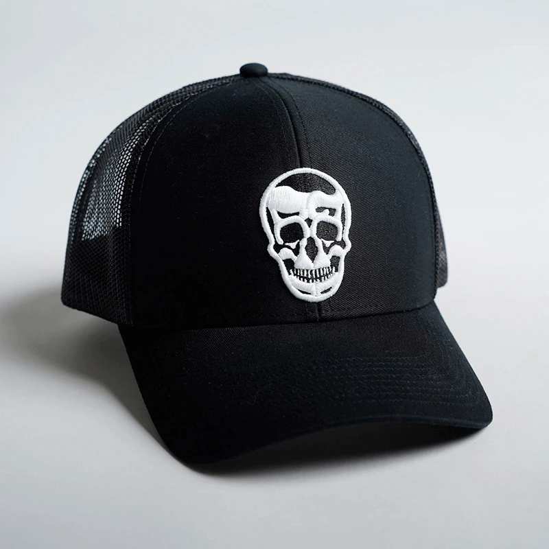 Made from pure cotton, the Gymreapers trucker hat has an embroidered skull on the front, button and eyelet detail on top, and 6 different color options to match your style.Â