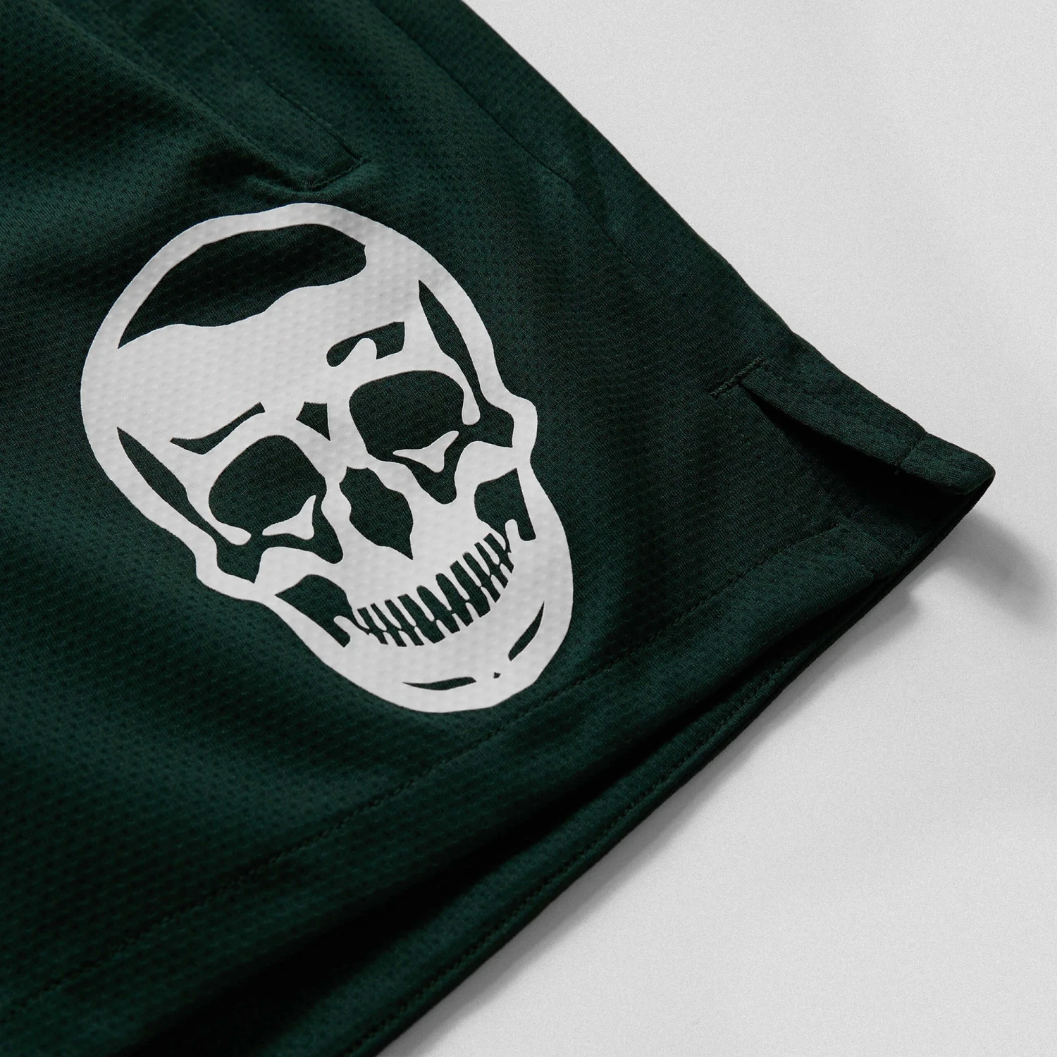 These mesh shorts feature side pockets equipped with a zipper closure for peace of mind. Wear Gymreapers mesh shorts for training, workouts, weightlifting, and everyday activity. Printed Gymreapers skull accents the left-hand side pocket.