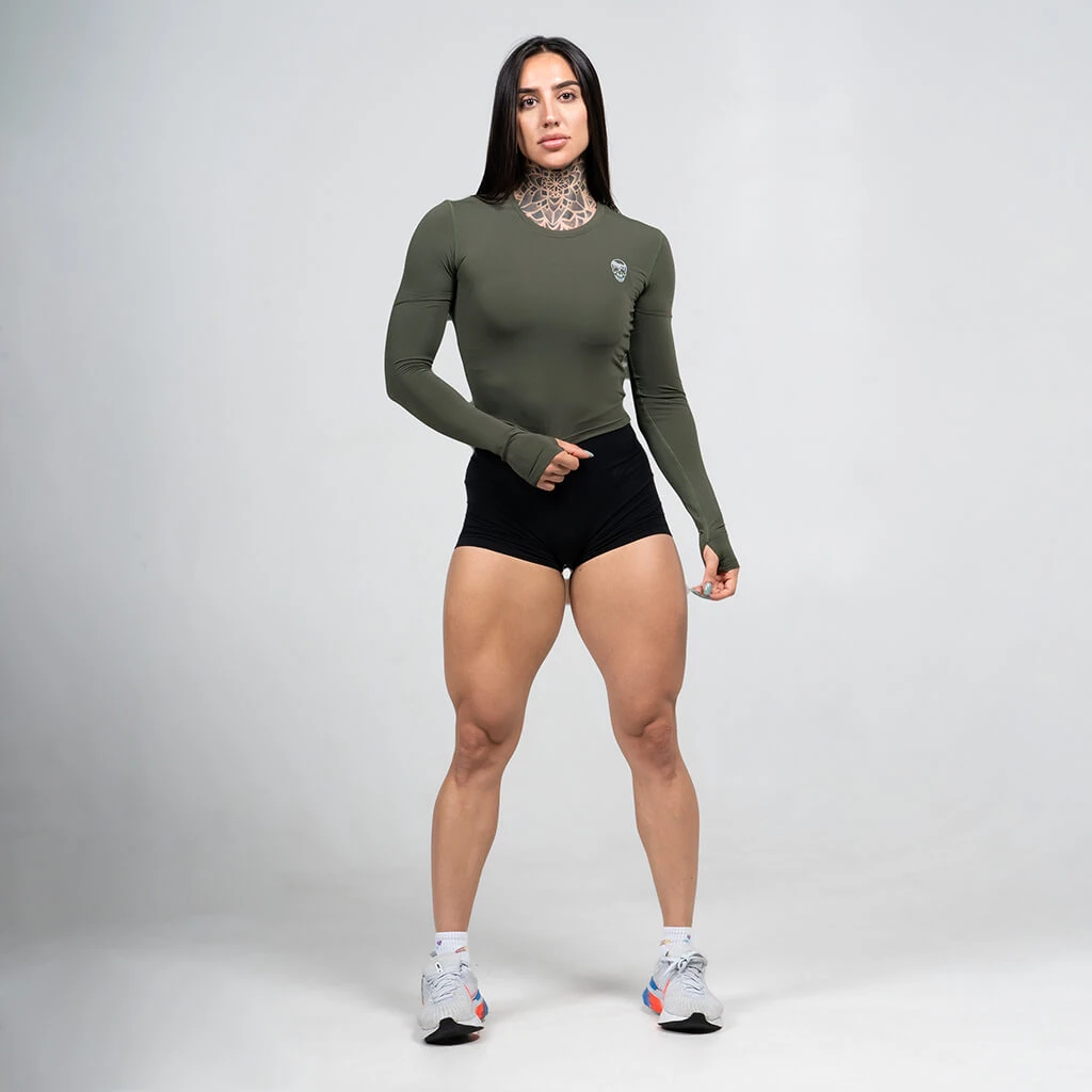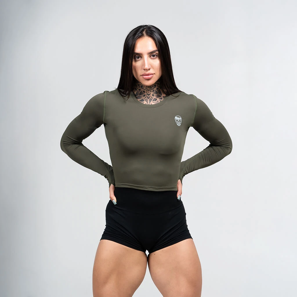 Gymreapers women’s performance long-sleeve shirt is made to keep you comfortable and dry. It features moisture-wicking fabric to draw sweat away from the skin and quick-drying 4-way stretch material for ultimate comfort. Ultra-soft and slim-fitting, this performance shirt is perfect for outdoor workouts or any indoor training session.Â